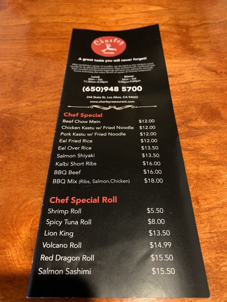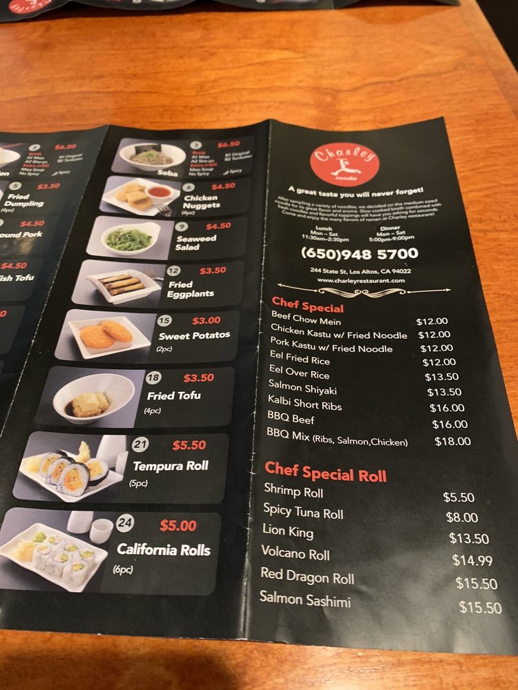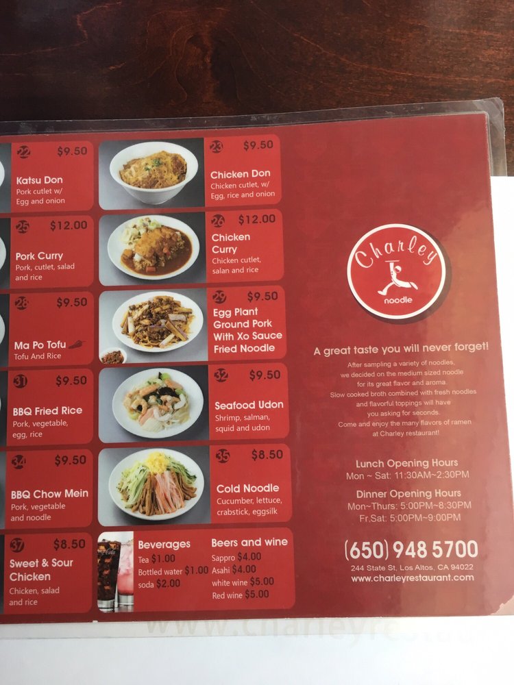 Welcome to Charley Noodle & Grill, a hidden gem nestled in the heart of Los Altos, CA. This casual eatery specializes in a delightful fusion of Chinese and Japanese dishes, offering a wide array of noodles, ramen, and savory entrees that cater to all taste buds.